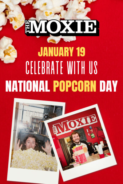 From 4:00–8:00 PM on January 19th, ANYONE who walks through The Moxie doors will receive one free small popcorn.* Our greatest supporters, Moxie Members, are invited to upgrade their discounted or free popcorn to a large at no additional cost.**